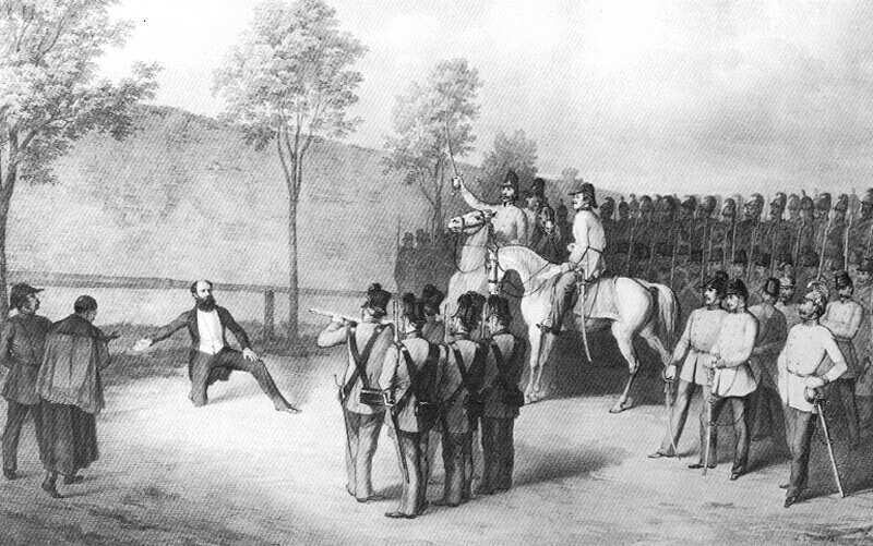 1849. október 6-án végezték ki Aradon az 1848-49. évi szabadságharc 13 honvédtisztjét, Pesten pedig ugyanezen a napon hajtották végre a gróf Batthyány Lajos egykori miniszterelnökre kiszabott halálos ítéletet.