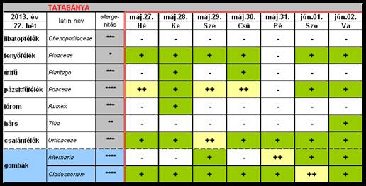 22. héten Tatabányán előző hétnél kissé alacsonyabb volt a pollenterhelés
