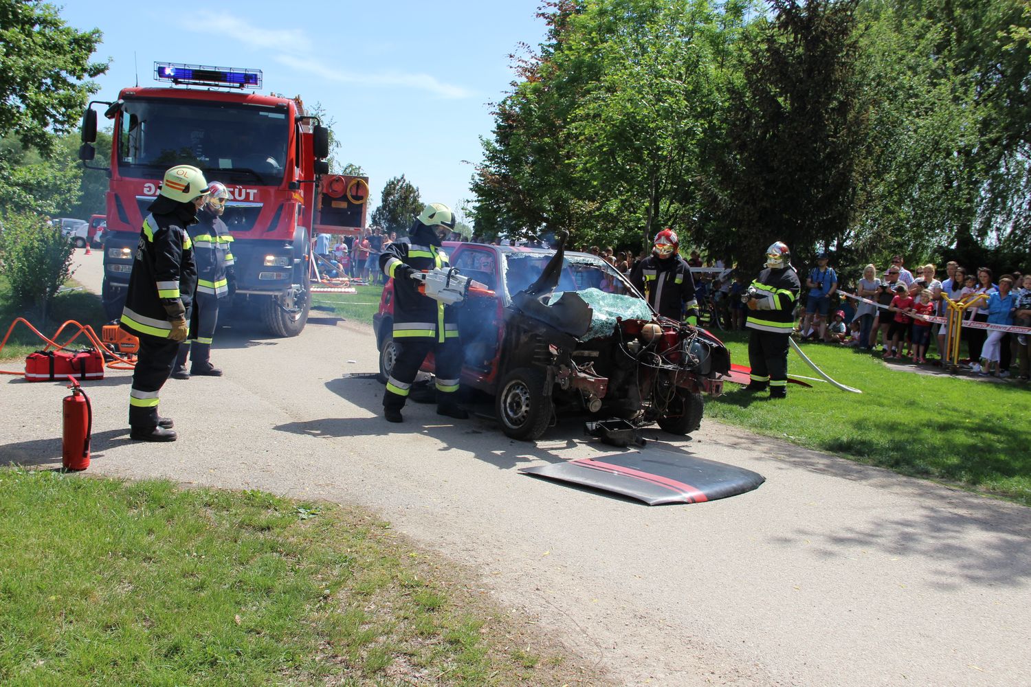 Bár a nap legfőbb attrakciója feltehetően idén is a főzőverseny volt, a Környei Polgárőr és Önkéntes Tűzoltó Egyesület mentési bemutatója méltán vonzotta el a bográcsok mellől a gyerekeket, felnőtteket. Az egyesület tagjai egy közlekedési balesetet szimuláltak az autóban rekedt sérülttel, s míg az önkéntesek kiszabadították, Deák István szakmai tanácsadó és Dr. Árendás József főorvos summázta, hogy ilyen helyzetekben mik a legfontosabb teendők, mit, hogyan tehetnek, és mit kell tenniük a laikusoknak, ha elsőként érnek baleseti helyszínre.
