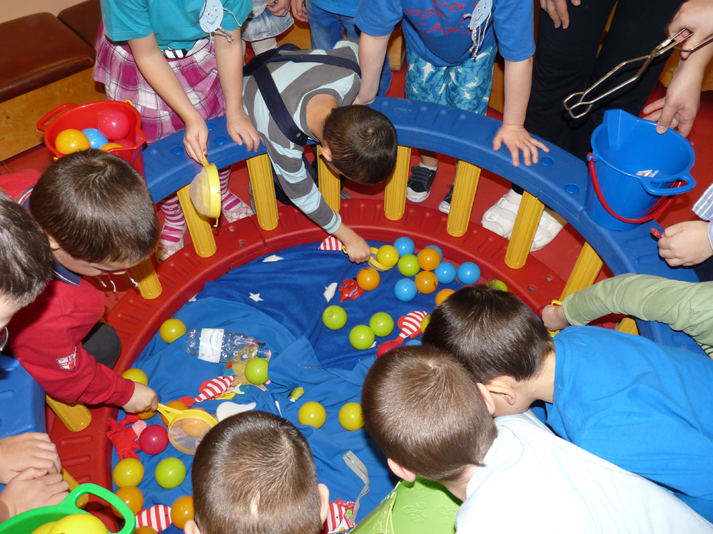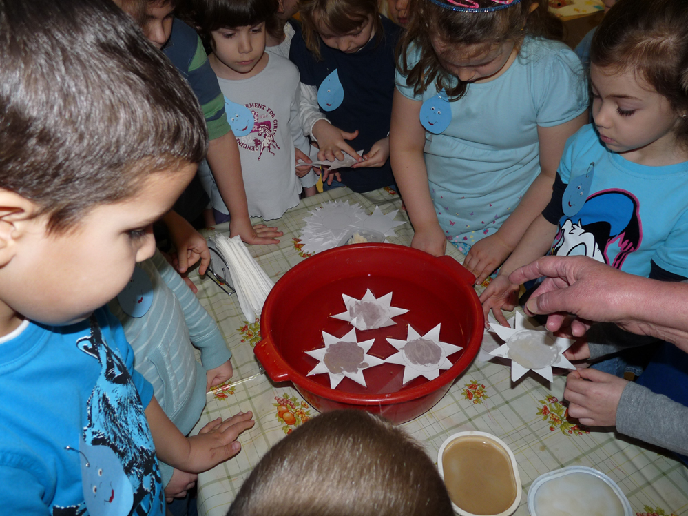 Több állomást alakítottak ki az óvónők, ahol a kicsik megtudhatták többek között, miért nem süllyednek el a madarak a vízben, a homokon, földön keresztül átszűrt szennyezett víz tisztítását, mi is történik az állatokkal, növényekkel akkor, ha olaj kerül a vízbe.