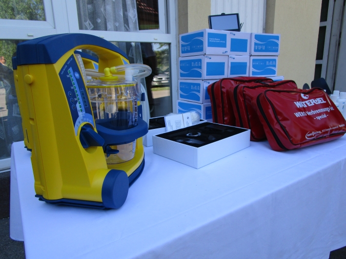 Dr. Onódi Lívia, az OMSZ regionális orvosogazgatója elmondta: a támogatásokból többek között az ellátás biztonságát szolgáló GPS-eket, gyógyszereket és olyan automata műszereket vásároltak, amelyek lehetővé teszik a gyors és szakszerű beavatkozásokat. Megemlítette, hogy az országos fejlesztés részeként olyan számítógépes hálózatot működtetnek a jövőben, amely megfelel a kor kihívásainak. Ezután az adományozók és a jelenlévő egészségügyi szakeberek, a mentőállomás munkatársai az új műszerekkel ismerkedtek.