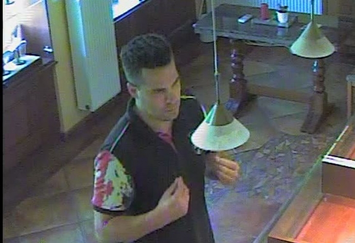 Az ez idáig ismeretlen férfi 2017. augusztus 8-án 16 óra 48 perckor egy tatai ékszerbolt pultjáról eltulajdonított egy ékszertartó tálcát, amelyen arany nyakláncok voltak..