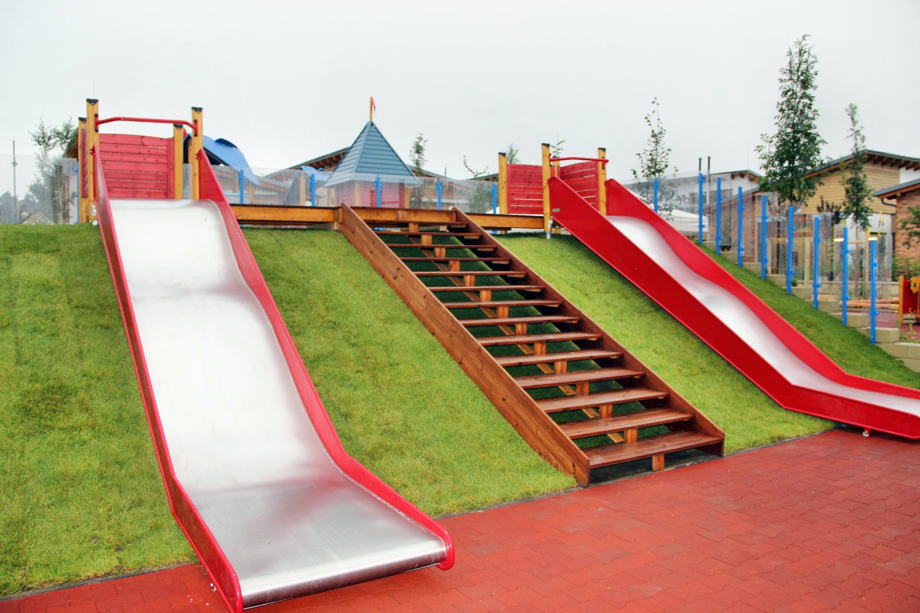 A területen 94, a későbbiekben árnyékot biztosító fát, 15 fenyőt és pontosan 2742 cserjét ültettek el. Az óvodai csoportok részére a korábban elkészült 7 virágágyás mellé ugyanennyi veteményes kertet, valamint a bölcsődések és ovisok számára kerítéssel elválasztott, külön játszóudvart alakítottak ki úgy, hogy a gyerekek akkor sem maradnak játszóeszköz nélkül, ha valamennyi csoport egyszerre, egy időben szeretné a friss levegőn tölteni az időt. A gyerkőcöket két, egyenként 200 m2-es labdázó rét, hat, összességében 120 m2-nyi homokozó és kétcsúszdás óriás csúszdadomb is várja.