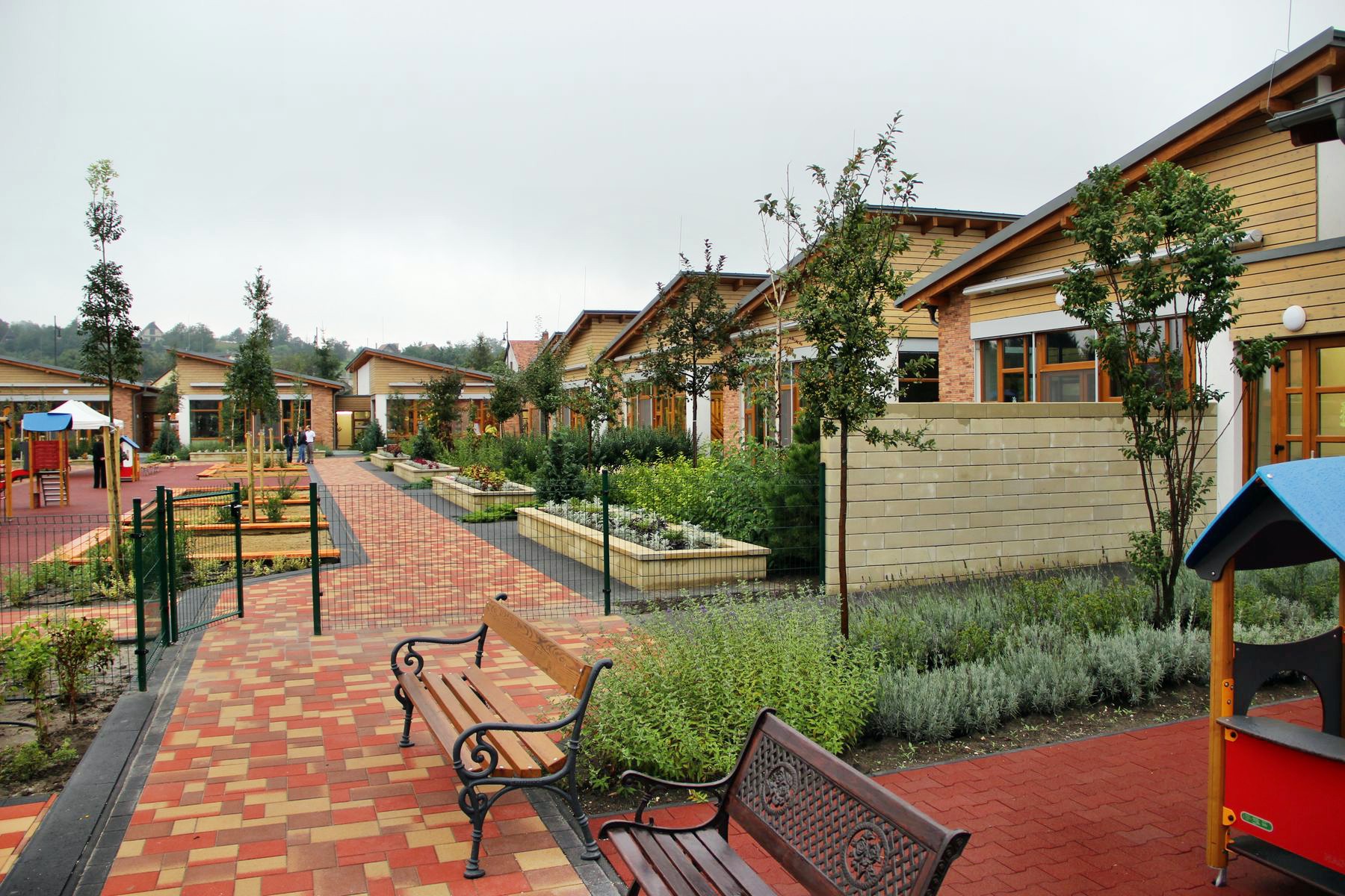 A játékok és kerti szerszámok tárolásáról négy faházikóban gondoskodnak, a zöldfelület karbantartását fúrt kútról üzemeltetett automata öntözőrendszer segíti, s a kisgyermekek számára három ivókút készült, a környezetükben 13 paddal.