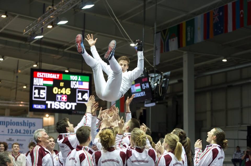 Esztergályos Patrik,kadet férfi párbajtőr világbajnok: “Elképesztő, fantasztikus érzés! A nap első asszójában az orosz ellenfelem előnyben volt, de váltottam, és sikerült fordítanom. Aztán jött két olasz, akikkel szemben az volt a taktika, hogy