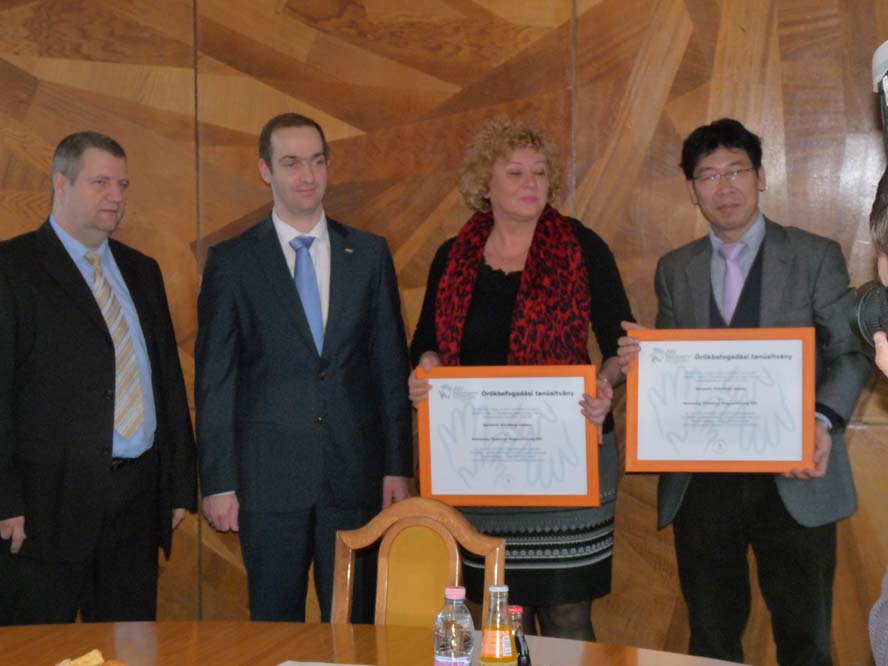 A gazdasági társaságok, vállalkozások társadalmi felelősségvállalási programjuk keretében nevelési-oktatási intézményeket támogatnak. Az „Örökbefogadási Tanúsítványokat” a cégek és az intézmények vezetői Schmidt Csaba polgármestertől vehették át.