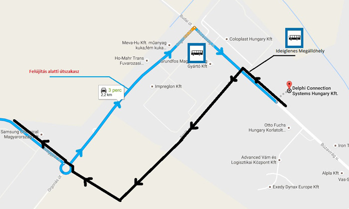 Értesítjük a tisztelt Utazóközönséget, hogy 2017. március 27-én (hétfőn) reggel 7:00 órától kezdve útfelújítási munkálatok miatt egyirányúsításra kerül a tatabányai Ipari Parkban található Orgonás út, az Üveggyári úti körforgalomtól a Búzavirág út irányába.