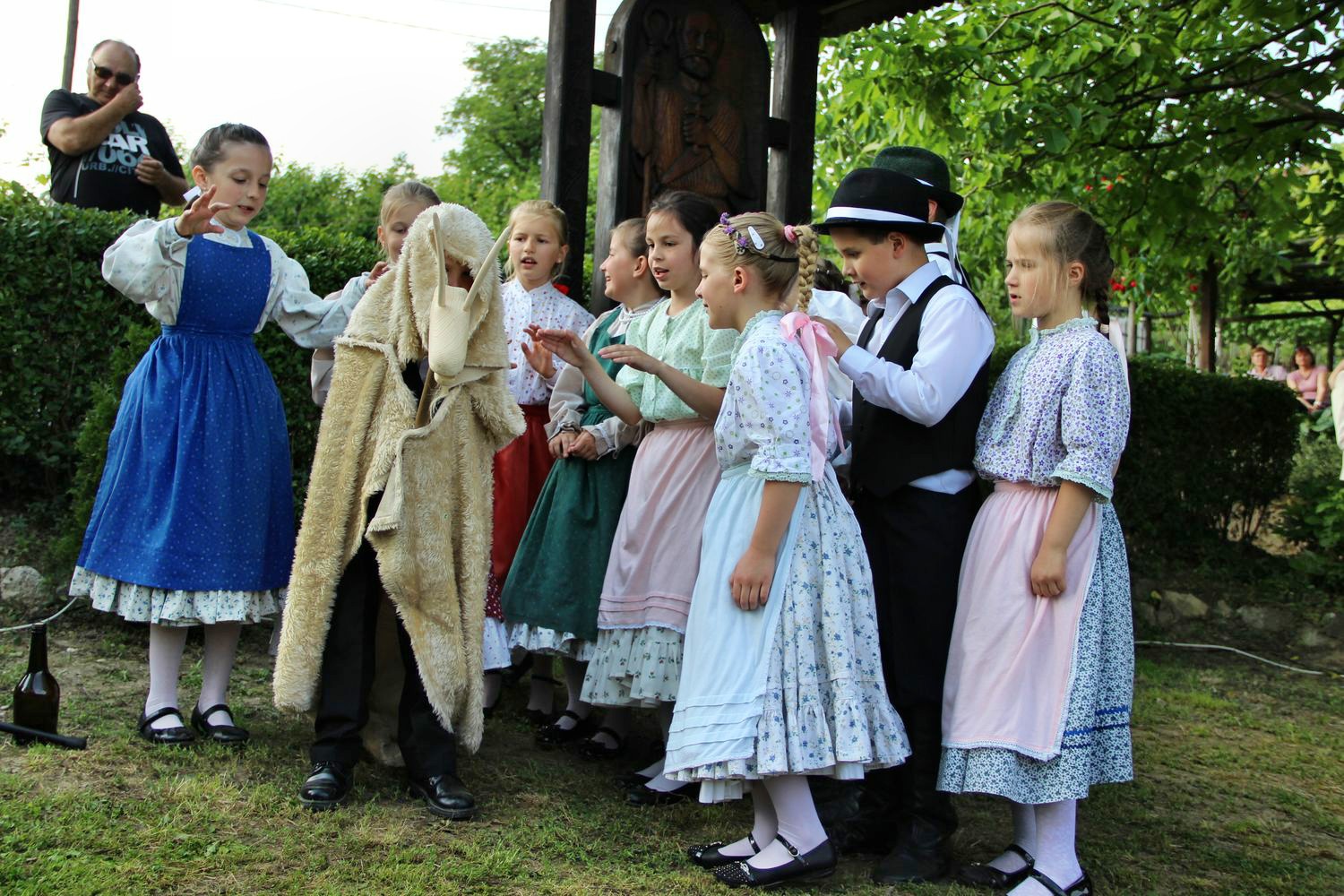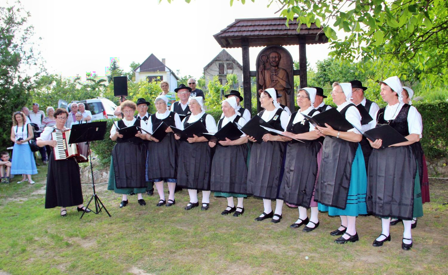 Az ünnepség folytatásaként nagy sikert aratott a Német Nemzetiségi Hagyományőrző Gyerekcsoport bájos produkciója, s az általános iskola néptánc tagozatának diákjai, akik új, a „Hová lett a kecske?” címet viselő mezőföldi koreográfiájuk rövidített, „hegyi” változatát adták elő Alapi Krisztián és Soós Lili Zsófi szólótáncával, Szücs Anna mesélésével, Törös Ottó „meglepetés szereplésével” színesítve. A Német Nemzetiségi Dalkör stílszerűen bordalokkal is emelte a program hangulatát, majd Bella Sándor a szobor megöntözése előtt Szabó Lászlót, a legidősebb, 92 esztendős Les-hegyi gazdát köszöntötte. Laci bácsi az egyike azoknak, akiknek a keze munkája nyomán olyanná vált a Les-hegy, amilyennek ma is ismerik a környeiek, az odalátogatók.