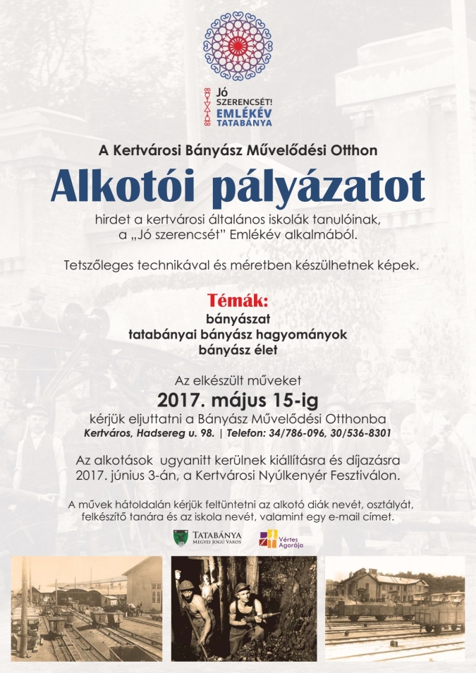 A Jó szerencsét! Emlékév keretében alkotói pályázatot hirdet a Bányász Művelődési Ház kertvárosi általános iskolások számára.
