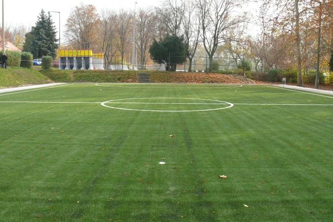 Elkészült a régi aszfaltos focipálya műfű-borítása a Jubileum parkban, hamarosan pedig a túlnyomásos sátor is a pálya fölé kerül, így azt december végén már birtokba is vehetik a sportolók