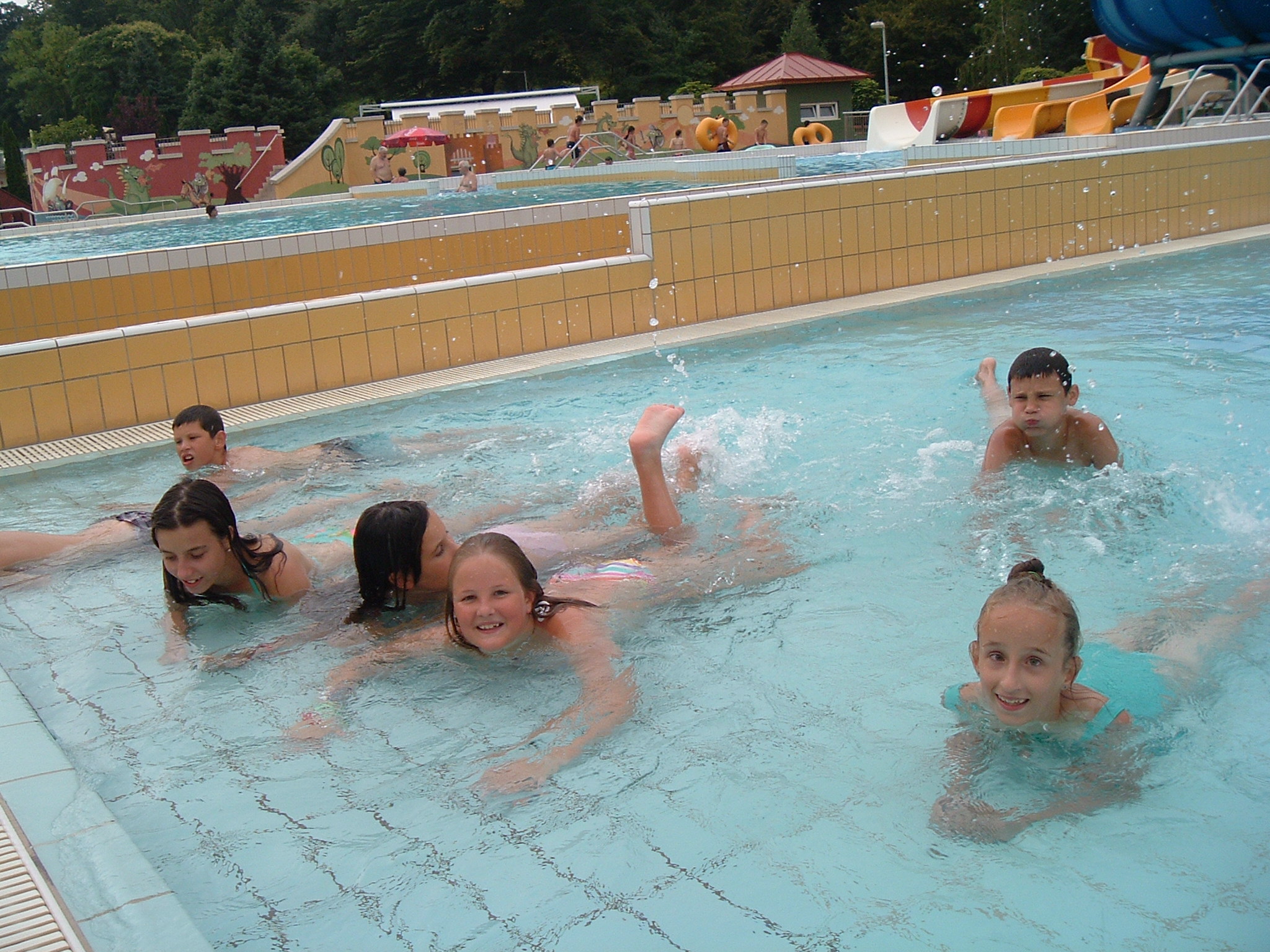 Kertvárosi Kamasz Tanya 15 gyermekkel és a Mosolygós Gyermekekért táborosai 25 gyermek és 10 felnőtt közösen kapcsolódott ki a tatabányai Gyémánt fürdőbe. Nagyon élvezték a gyerekek, bár az idő nem volt nagyon kegyes hozzánk, de őket ez nem zavarta, felszabadultan, vidáman lubickoltak, csúszdáztak.