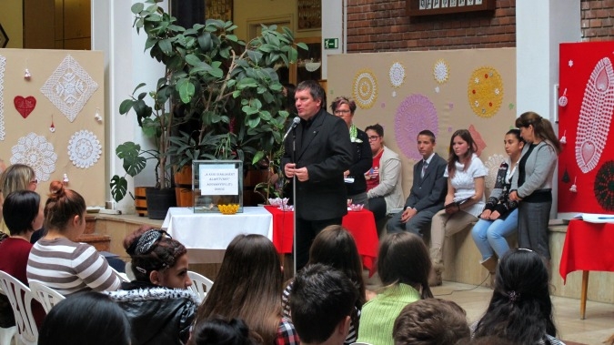 Emelte ki Bereznai Csaba alpolgármester az adventi csipkekiállítást megnyitó beszédében. Kirschner Mihályné csipkéből készített terítőit, karácsonyfadíszeit és betlehemét január 20-ig nézhetjük meg a Kereskedelmi, Vendéglátó és Idegenforgalmi Szakközép- és Szakiskolában.A csipkekészítés során úgy tűnhet, mintha az alkotó szinte a semmiből varázsolná elő ezeket a csodálatos díszeket, ehhez azonban kreativitásra, tehetségre, szorgalomra és sok kitartásra van szükség – hallhattuk az alpolgármestertől. Bereznai Csaba a megnyitón részt vevő diákok figyelmét a család és a közösségi szolgálat jelentőségére hívta fel, majd az advent idején szükséges lelki feltöltődés, elmélyülés fontosságáról ejtett szót. Kirschner Mihályné alkotásait lánya, Kirschner Viktória ajánlotta a vendégek figyelmébe. Megtudhattuk tőle, hogy a csipkekészítésnek több generációra visszanyúló hagyományai vannak a családban, a most kiállított darabok között pedig adventi, karácsonyi témájú terítőket, díszeket, sőt egy betlehemet is láthatunk.