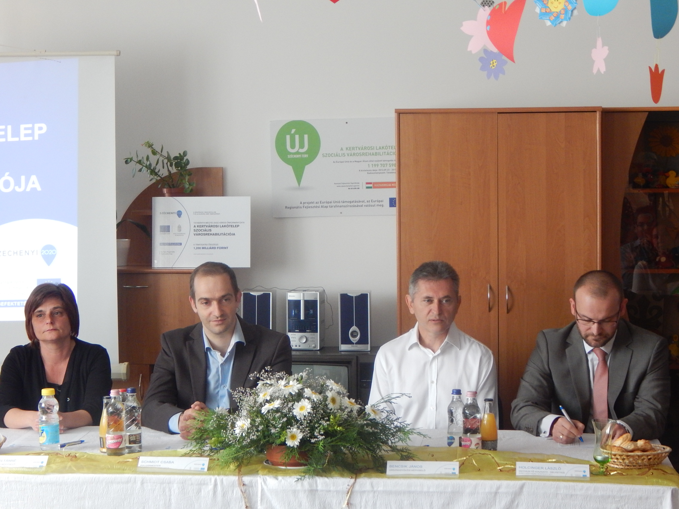 A záró rendezvényen Schmidt Csaba Tatabánya Megyei Jogú Város polgármestere előadásában fotókon keresztül mutatta be a projekt elemeit és azok megvalósulását. A városvezető fontosnak tartotta elmondani: a Kertváros szociális városrehabilitációja során olyan szociális programot hajtottunk végre, mely az itt élők életének, mindennapjainak segítésére koncentrált. A beruházás keretében több mint négyszáz lakás teljes energetikai felújítását valósítottuk meg, és emellett olyan szociális programokon vehettek részt az itt élők, melyek a lakóközösségnek segítséget nyújtott a munkaerő-piacra való visszatérésben, a mindennapi életben. A program egyik kiemelkedő elemeként megvalósult máltai típusú játszóteret közel egy éve már birtokba vehették a gyerekek, aminek köszönhetően az európai szabványoknak megfelelő környezetben, szociális szakemberek felügyelete mellett tölthetik szabadidejüket – hangsúlyozta Schmidt Csaba.
