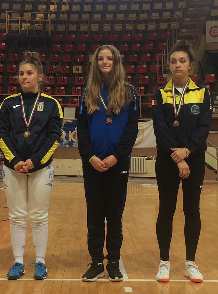 A legkisebb korosztály hölgy tagjai is vasárnap vívtak. Az OMS-Tata fiatal versenyzője, Molnár Eszter kiváló csoportkörök után a 13. helyről kezdte meg a direkt kieséses tábla küzdelmeit az 50 fős mezőnyben. Nagy csatában egy tusos vereséget szenvedett az érdi Csók Kincsőtől, így a 8. helyen zárta a versenyt.