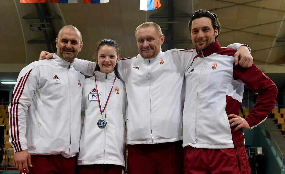 A képen :Kovács Iván női párbajtőr vezetőedző, Kun Anna junior Európa-bajnok , Plásztán Attila junior válogatott edző, Partali Csaba kadet válogatott edző.