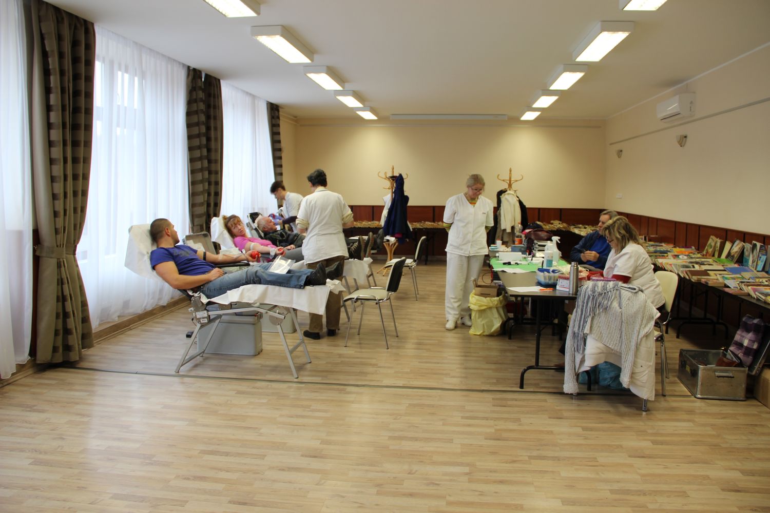 A hagyományos bőséges vendéglátásról ezúttal is Andor Ildikó titkár gondoskodott, e mellett a donorok a várakozás perceiben a „Szabad a téka” könyvkínálatából is szemezgethettek, amely hétfőig várja az érdeklődőket a nagyteremben, az adományládában összegyűlt forintok a Vöröskereszt környei alapszervezetének kasszáját gyarapítják majd.