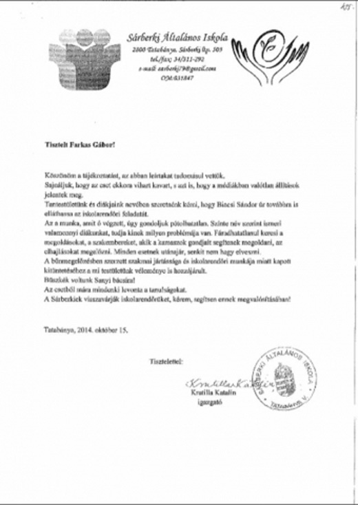 Krutilla Katalin igazgatónő hozzájárulásával közzé tesszük a Komárom-Esztergom Megyei rendőrfakapitánynak írt levelét.