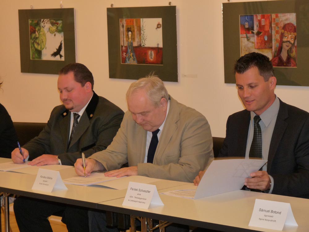 A Vértes Agorája részéről Sámuel Botond, az Agora Nonprofit Kft. ügyvezetője látta el névjegyével a dokumentumokat.