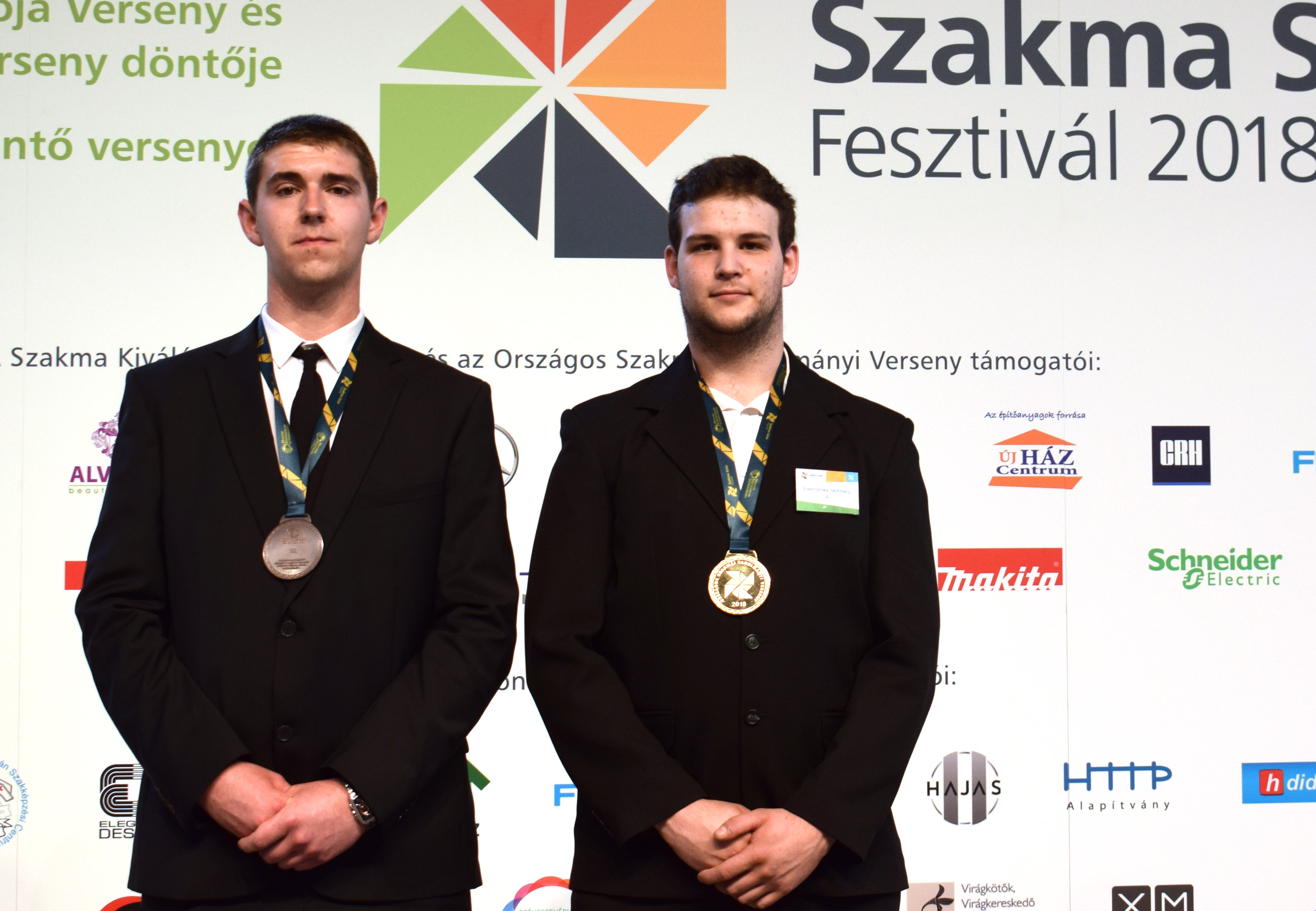 Országos első helyet ért el Magda Martin (balról) elektronikai technikus (Tatabányai SZC Bánki Donát-Péch Antal Szakgimnáziuma). Központifűtés- és gázhálózat rendszerszerelő szakmában országos harmadik helyet szerzett Stock Tibor (jobbról) (Tatabányai SZC Fellner Jakab Szakgimnáziuma és Szakközépiskolája).