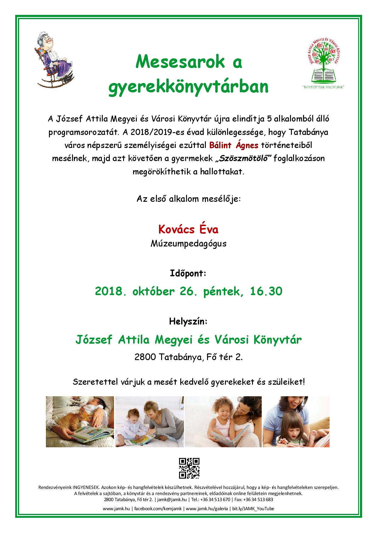 2018. október 26-án, pénteken 16.30 órától Kovács Éva múzeumpedagógus mesél az érdeklődő gyerekeknek.