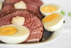 Húsvét örömünnep, egyben a nagyböjt vége. Étkezési szokás szerint sonkát, tojást, tormát fogyasztottak még a nem katolikus hívők is. Az ételekből a családfő mindenkinek adott egy keveset, először a tormát kóstolták meg, emlékezve Krisztus szenvedéseire a keresztfán, utána a főtt tojást. A szentelt ételek maradékát sokféle módon használták fel: elégették, vagy a szentelt sonka csontját gyümölcsfára akasztották, hogy a fa sokat teremjen. A morzsákat a tyúkoknak adták, hogy jól tojjanak.A legismertebb húsvéti ételeknek mágikus-misztikus eredete van. Szinte áldozati jellegű étel a bárány, amelyet már az ószövetségi zsidók is fogyasztottak, Egyiptomból való menekülésük emlékére. Ezért Krisztust az Isten bárányának nevezik, hiszen az újszövetségi könyvek az ószövetségi szimbólumokra támaszkodnak.