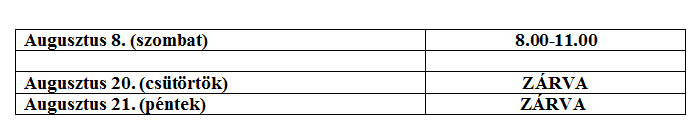 Az augusztus 20-ai munkaszüneti napra tekintettel változik az ügyfélfogadási rend
