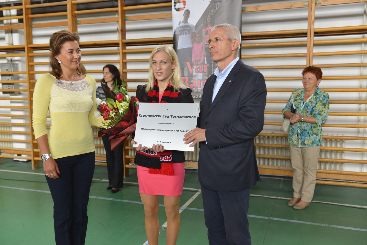 A hetekig tartó felújítási munkálatokat befejeztével az évnyitó után, olimpikonunk, Csernoviczki Éva az iskola tanulóival közösen avatta fel és vette birtokba a tornacsarnokot. Az intézmény vezetője, Pleier Tamás az átadáson hozzátette: „Sporttagozatos iskolaként indultunk 1987-ben, 1993-tól a nyolcosztályos tagozat kapott prioritást, ám folyamatosan támogatjuk sportoló diákjaink pályafutását. Előnyt és vonzerőt jelent az óvárosi sportkomplexum közelsége, ezért igazán nagy öröm számunkra, hogy intézményünk megszépülhetett, a sportolni vágyó fiatalokat egy új és szép környezet fogadhatja. Éva példamutató sportsikere, jelenléte és névadó szerepe pedig külön öröm az iskola valamennyi dolgozója és tanulója számára.”