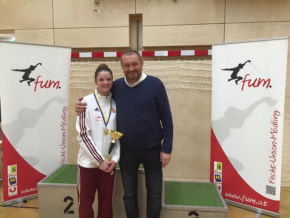 U23-as európai körversenyt rendezett a hétvégén Ausztria. A magyar párbajtőröző hölgyek népes mezőnnyel képviselték hazánkat, mivel ez egyben válogató versenynek is számított. Kun Anna junior Európa-bajnokunk, a kört követően remek vívással menetelt végig a direkt kieséses táblán egészen a dobogó legfelső fokáig és lett aranyérmes a verseny végén. Gratulálunk!