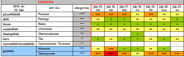 Az OKK Aerobiológiai Hálózatának Tatabányára vonatkozó 25. heti jelentése: