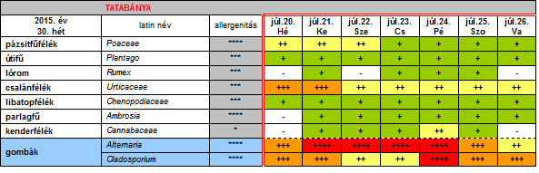 Az OKK Aerobiológiai Hálózatának Tatabányára vonatkozó 30. heti jelentése: