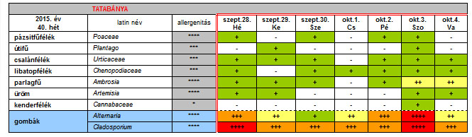 Az OKK Aerobiológiai Hálózatának Tatabányára vonatkozó 40. heti jelentése: