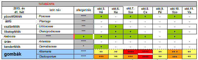 Az OKK Aerobiológiai Hálózatának Tatabányára vonatkozó 41. heti jelentése: