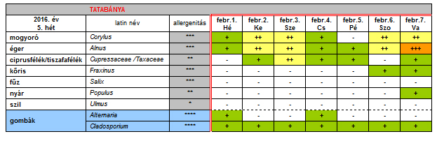 Az OKK Aerobiológiai Hálózatának Tatabányára vonatkozó 5. heti jelentése: