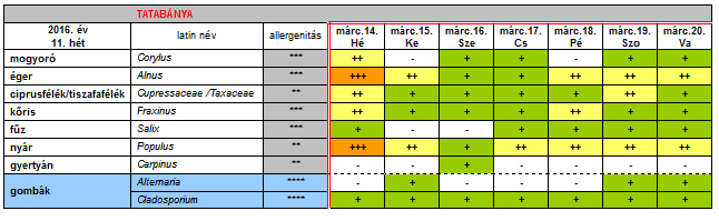 Az OKK Aerobiológiai Hálózatának Tatabányára vonatkozó 11. heti jelentése: