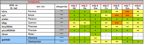 Az OKK Aerobiológiai Hálózatának Tatabányára vonatkozó 18. heti jelentése: