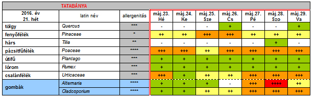 Az OKK Aerobiológiai Hálózatának Tatabányára vonatkozó 21. heti jelentése: