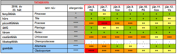 Az OKK Aerobiológiai Hálózatának Tatabányára vonatkozó 23. heti jelentése: