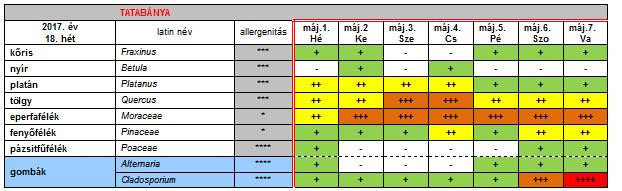 Az OKK Aerobiológiai Hálózatának Tatabányára vonatkozó 18. heti jelentése: