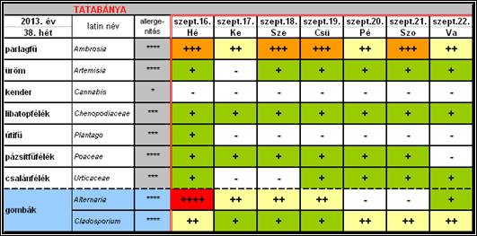 A 38. héten Tatabányán tovább csökkent a pollenterhelés