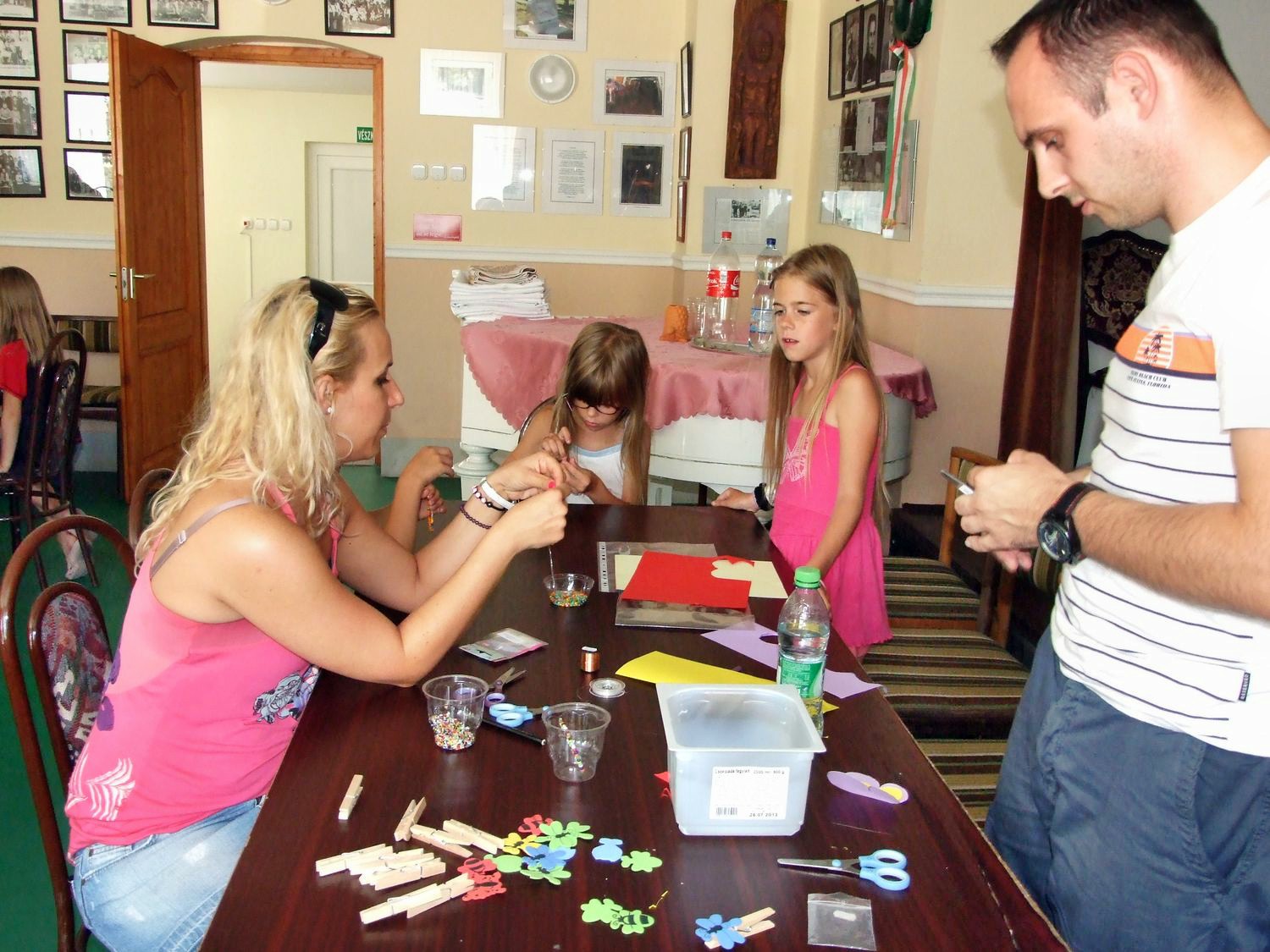 Az épületbe lépve – a kinti kánikulához mérten – kellemes hűvös, de legfőképpen elmélyülten rajzoló, ragasztó, festő, lyukazó fiúk, lányok látványa fogadta az érkezőt.