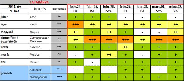 Tatabánya 9. hét pollenjelentés