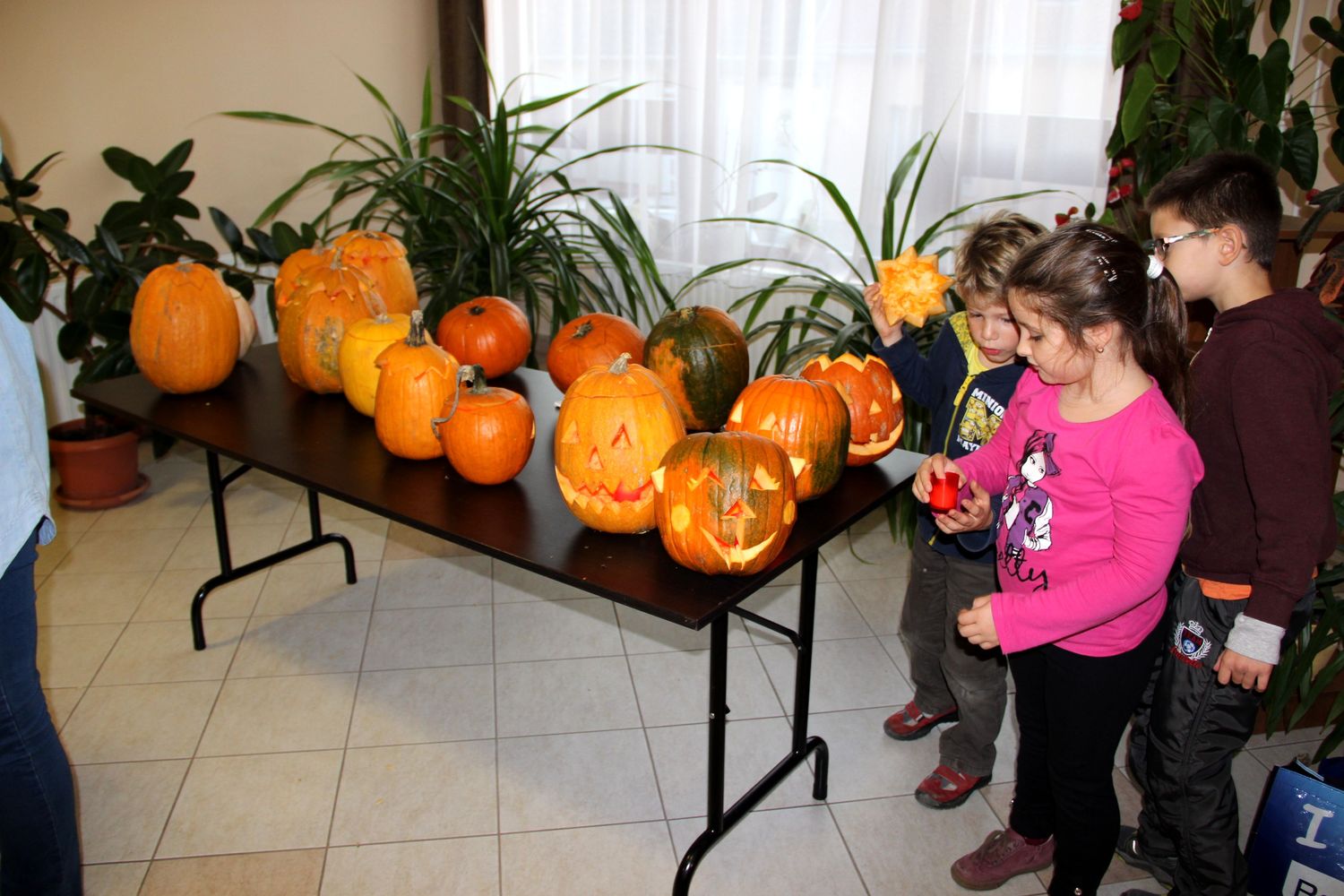 A vendégeket majdnem negyvenféle tökös óriás fajáték várta: egy részük az épület előtt és mellett, így bőven akadtak, akik a ragyogó napsütésben birkóztak meg a célba dobással, labirintussal, képkirakással, majd következhetett a tökfaragás. Egy-két „alany” igencsak keményfejűnek bizonyult, s elkélt a „skalpolásnál” a férfikéz, de végül valamennyi megadta magát, s egy idő után már bájos, vagy bájosan ijesztőnek ható töklámpásként sorakoztak az asztalon.