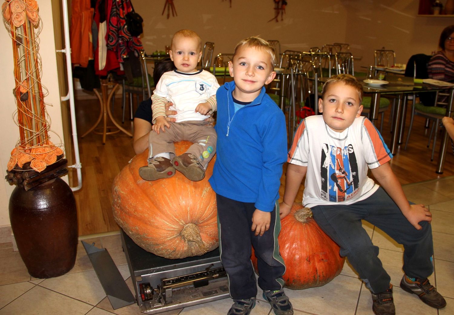 A tökös súlyverseny végül nem akármilyen eredménnyel zárult. Tizenhatan neveztek, s egy ideig kisebb, 2-3 kilós darabokkal érkeztek a gyerkőcök. Aztán úgy tűnt, Hujber Dorina Miranda lesz a befutó pontosan 7 kilós terményével, ám később Lengyel László egy 12,1 kilós tököt cipelt be, de a fődíjhoz, a tökformájú termetes csokoládés tortához fűződő reményei 16 óra körül szertefoszlottak: a Králl testvérek apukája molnár kocsin tolt be egy hatalmas, 55,5 kilós példányt, s mellé „csak úgy” egy 25,5 kilósat. Jártak is csodájára, készültek a fotók, szelfik, s a nemzetiségi önkormányzat az eredményhirdetést követően „le is csapott” a tökökre, melyek a Márton napi ünnepségen díszítik majd a színpadot. Igaz, tökös legény lesz, aki kifaragja őket…