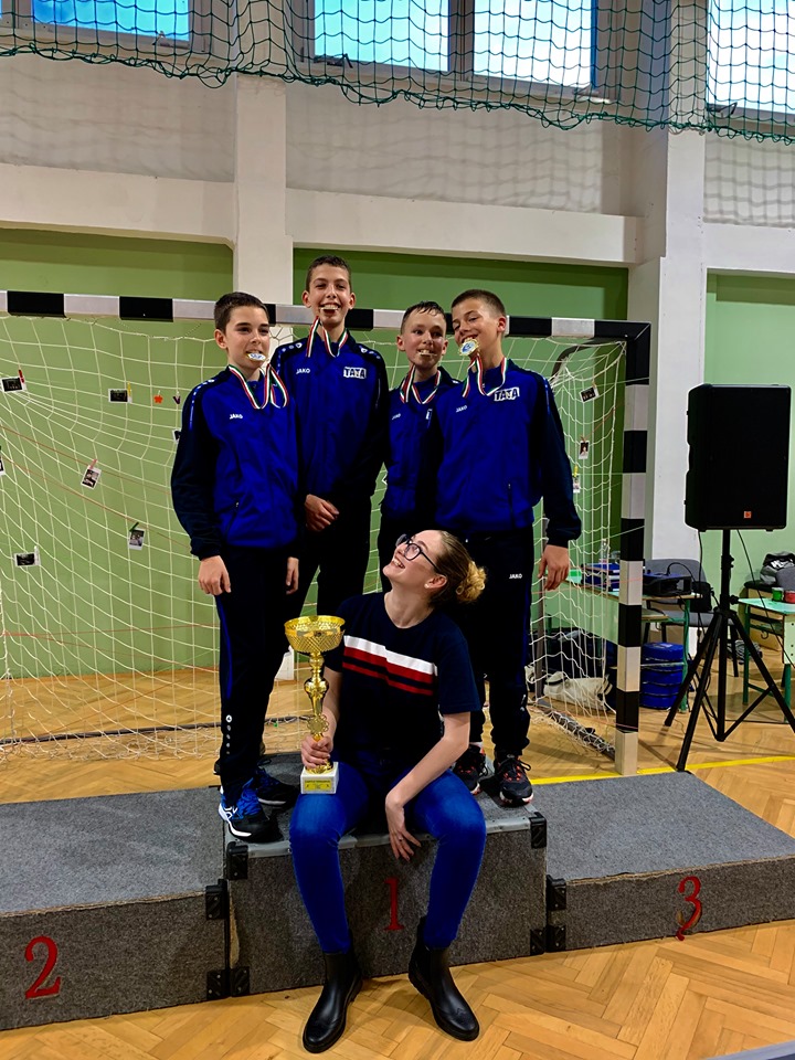 Délután a csapatversenyen a Horváth Levente, Molnár Ádám, Keresztes Ádám, Kun Ákos felállású tatai gyermek fiú csapat vidékbajnok lett!
