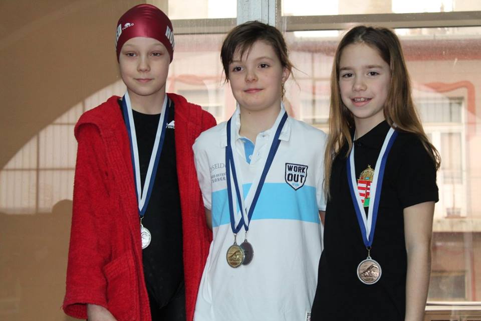 50 m pillangóúszás: Jackl Vivien 3. hely, Kugli Alíz 5. hely, Virág Réka 6. hely
