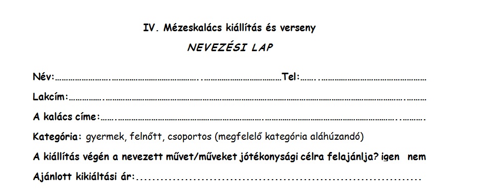 Mézeskalács versenyre felhívás és jelentkezési lap