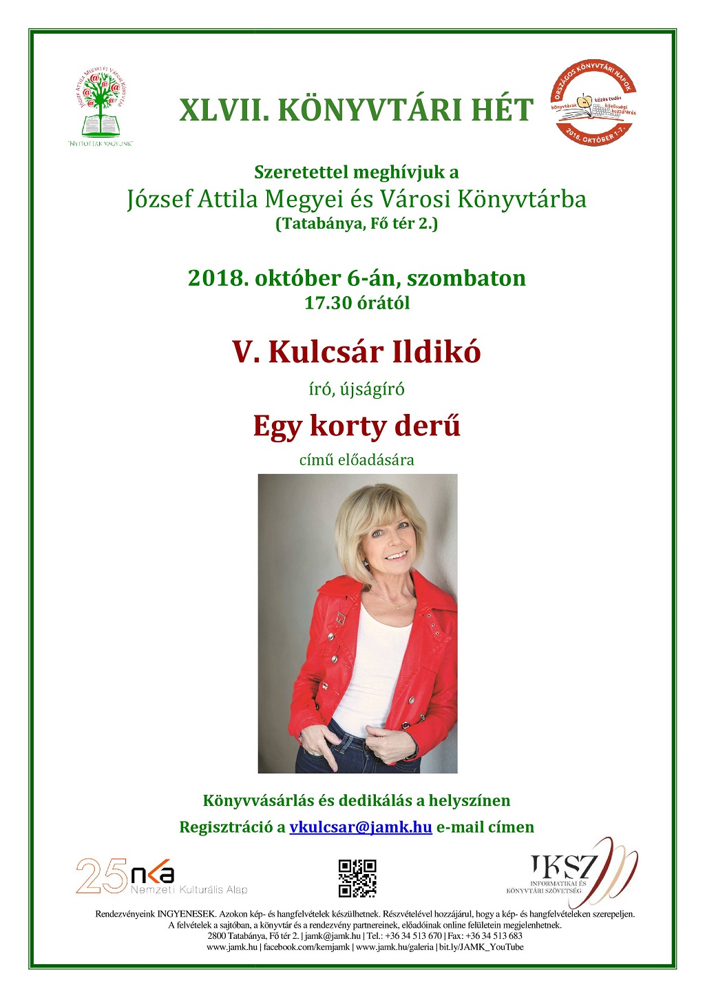 A férőhelyek korlátozott száma miatt a programra regisztrálni kell e-mailben a vkulcsar@jamk.hu email címen!