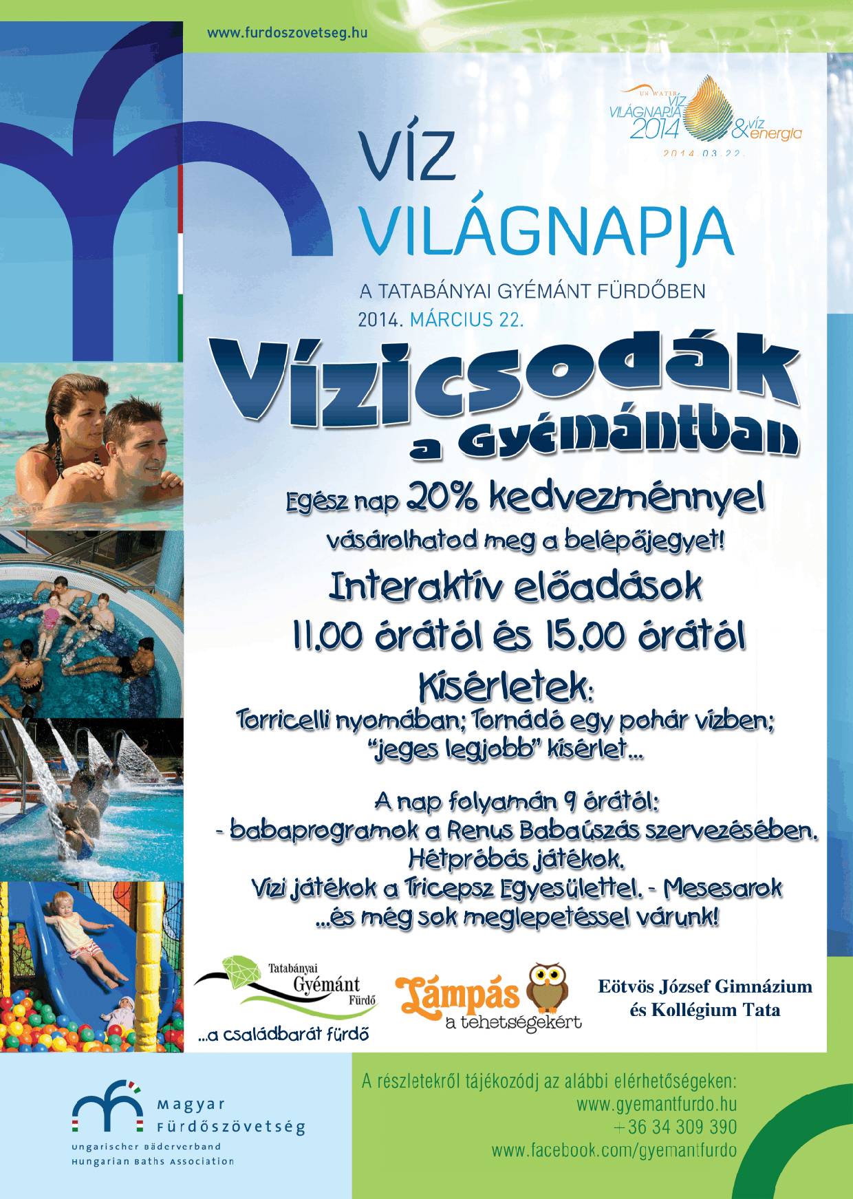 A Víz Világnapján (március 22., szombat) különleges és elgondolkodtató vizes kísérletekkel várja látogatóit a tatabányai Gyémánt Fürdő